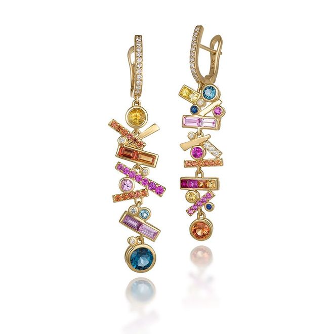 彩宝、钻石、金属与意想不到的轮廓相结合,融合富有冲击感的线条,不断突破常规,挑战极限,为经典珠宝带来更多意想不到的设计,作品曾多次在英国《Vogue》、英国《GQ》和《Tatler》等顶级出版物中亮相。