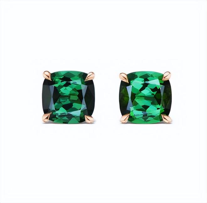 每只耳环上各点缀一朵精致的小花,绿色托帕石点缀的花蕊,颜色浓郁、明亮,充满生机,玫瑰金材质的花瓣,纹理刻画细腻入微,边缘点缀的钻石,增添精致感,造型栩栩如生。