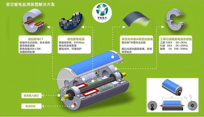 终端采用一体化设计(IP67防护等级),集成行波电流传感器(采集范围0.1A-2000A,带宽10kHz~2MHz)、工频电流传感器、北斗定位模块(同步误差<1μs)及无线通信单元。终端沿线公里间隔部署(山区缩短至20公里),通过耦合取电+太阳能供电(连续阴雨续航≥72小时),就近采集原始行波信号,经本地滤波(小波变换去噪)、波头提取后,以APN电力专网无线传输至后台,数据上传时延<150ms。